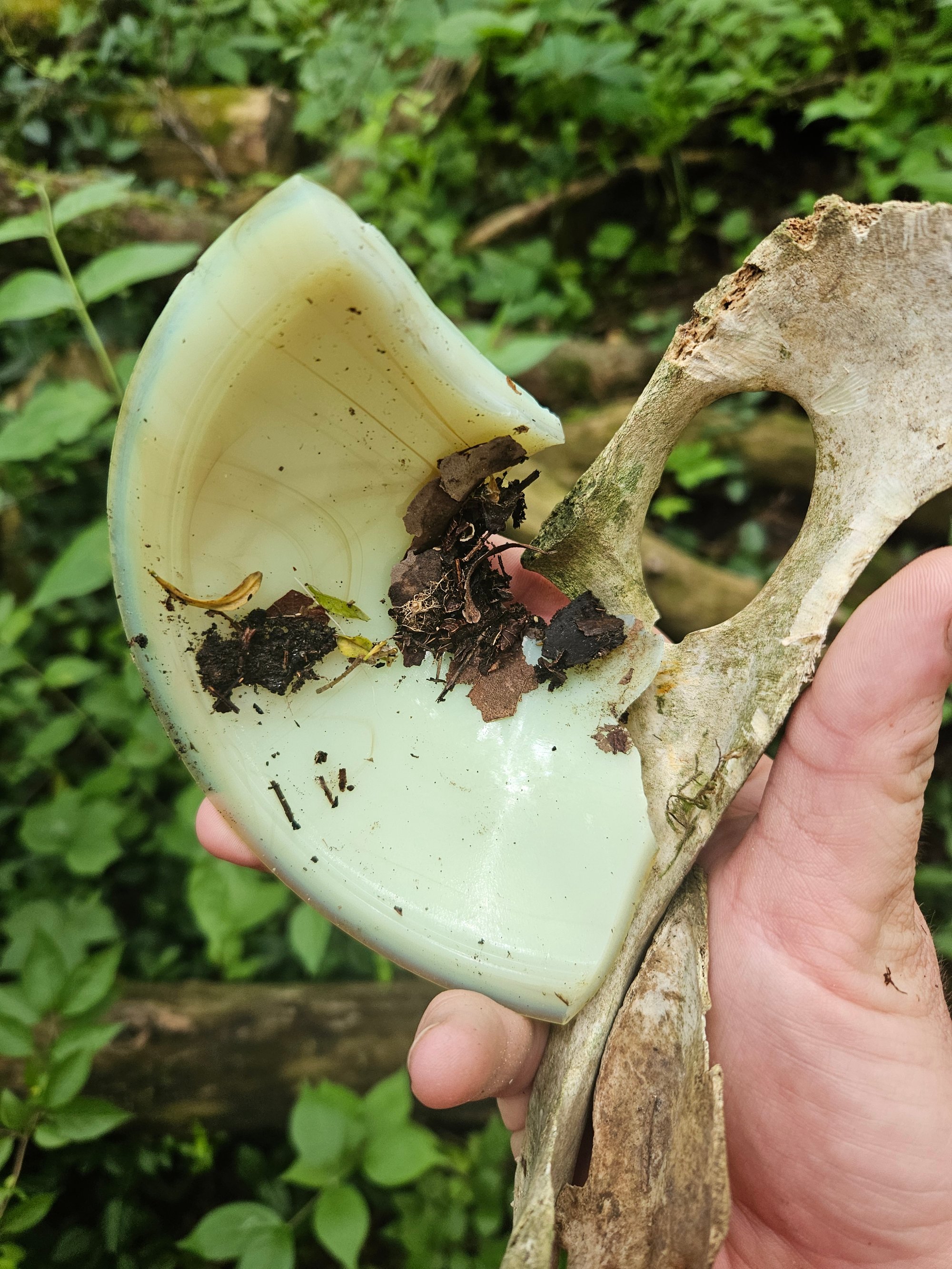 This is a broken chunk of Custard Uranium Glass. Most likely used to be a light shade. great for crafting Jewelry, cabs, spear heads, etc. Used to be said that Uranium had some healing properties. Before the 1890s mildly radioactive waters and sands were used in health spas.